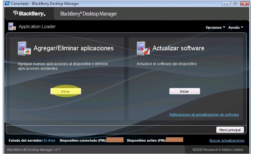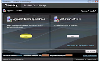 Desde el dispositivo, pulsamos la tecla de blackberry y nos vamos a configuración